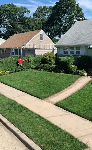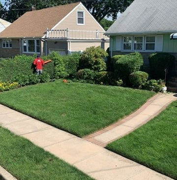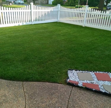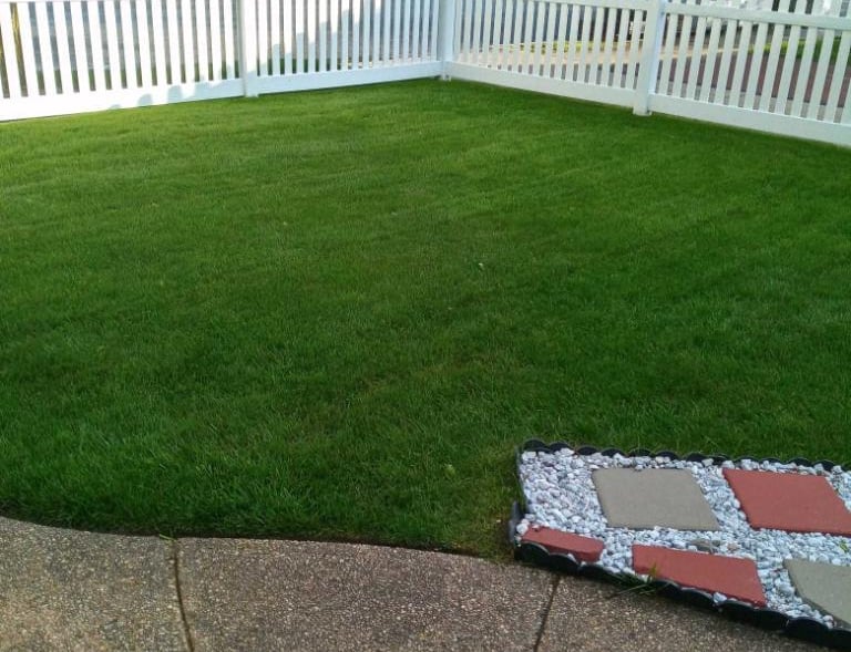 Regular mowing, trimming, and fertilizing to keep your grass healthy and green.
